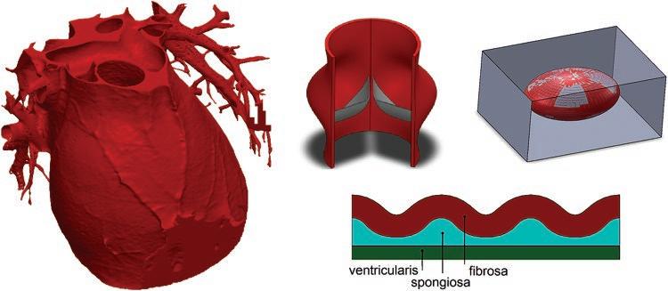 While molecular and cell biology may seem to be only involved with biological and/or chemical phenomena in very small scales, nevertheless, the biomechanics has been adopted to simulate complex organs down to their cell microstructure, such as the brain and its nerve cells, as presented in Figure 1.1, and the heart and its leaflets, the corresponding microscale layers and even an interstitial cell, as depicted in Figure 1.2.