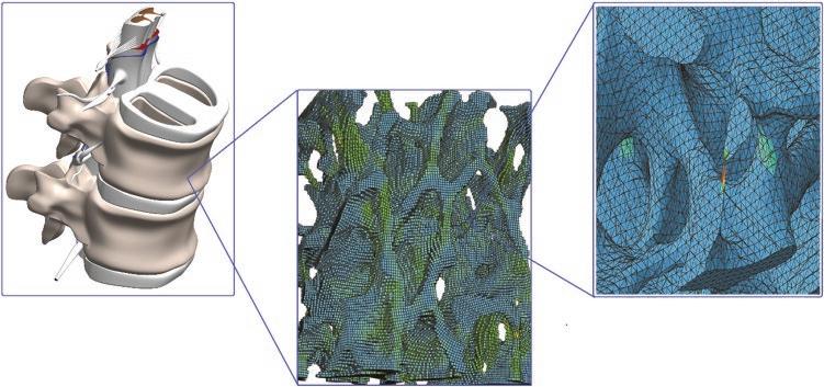 As another example, a fracture is a relatively common mode of failure for a bone (Figure 1.5). The bone, as a biosolid, is composed of several layers and a heterogeneous microstructure with different constituents and holes (representing the blood vessels, etc.). Both two- and three-dimensional simulations have been performed to study the fracture resistance of the bone as a single-scale porous solid medium or by advanced