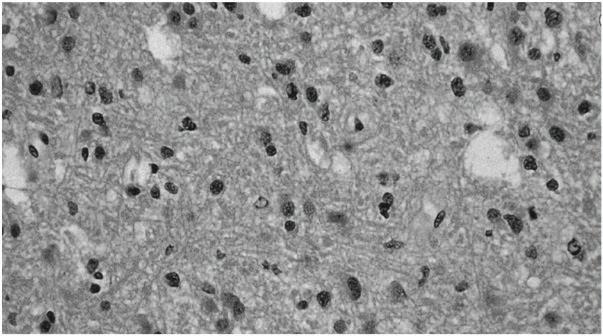 Figure 1.1 Histologic features of grade II astrocytoma, including increased astrocytic cellularity (“hypercellularity”). (Color Plate 1.1)