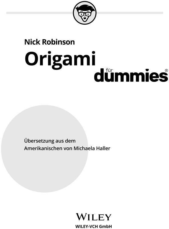 Dieses Buch ist meiner wunderbaren Frau Alison und meinen zwei Kindern Daisy und Nick Jr. (der schon lange größer ist als sein Vater) gewidmet. Weiterhin möchte ich den Origami-Künstlerinnen undKünstlern, deren Modelle ich in diesem Buch veröffentlichen durfte, für ihre Großzügigkeit danken. Vielen Dank für die vielen Ratschläge und Ideen.