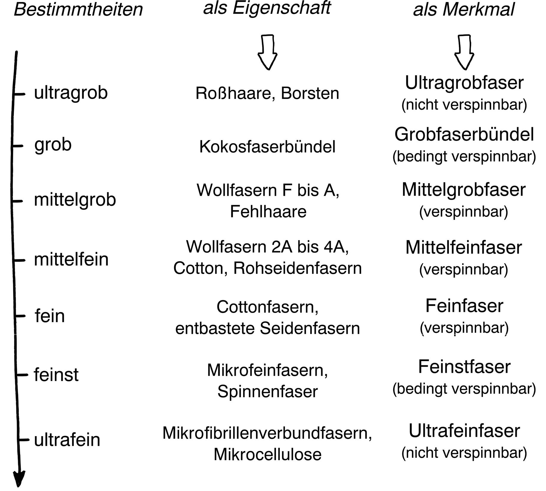 Abb.1.20 SystematikderFaserfeinheiten(Übersichtentwickelt aufderBasisderSystematikderTextilien[3]).