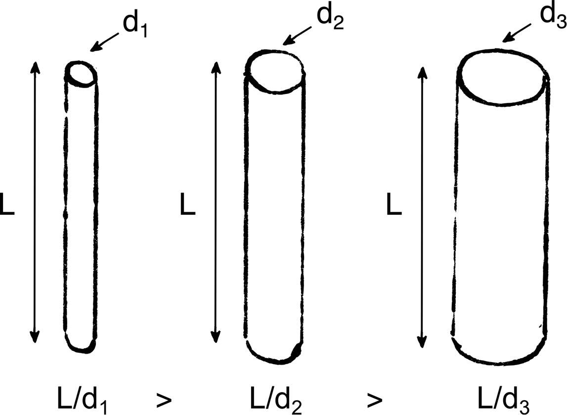 FürFaserverbundwerkstoffeistnichtnurdie LängederFaseroderFaserbündeleinewichtigeEigenschaft;dasAspektverhältnis(Länge/Durchmesser)beeinflusstmaßgeblichdie mechanischenEigenschaftendesVerbundwerkstoffs.InAbb.1.18ergebensichfürgleiche FaserlängenaufgrundverschiedenerDurchmesserunterschiedlicheAspektverhältnisse.