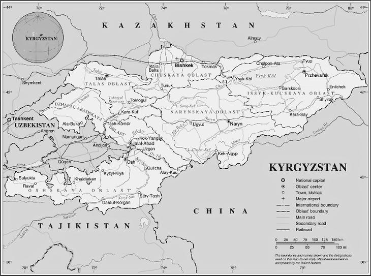 Throughout I have sought to balance historical accuracy and cultural respect for local particularities with a reader-friendly manuscript. I have generally adopted the following guidelines for spelling and transliteration. I have retained the standard English spelling of names that are common (e.g., Ferghana, Kokand, Samarqand). For Uzbek words, I have followed the most recent Uzbek Latin script. For Turkish, I have used the Turkish Latin script. For languages written in Cyrillic (Russian, Tajik, Kyrgyz), I have transliterated titles of sources and other names and terms from the most recent spellings, using the Library of Congress system. Tajik and Kyrgyz transliterations follow the Library of Congress system for the modified Cyrillic alphabets. For example, as is common in transliteration for nonlinguists, I use gh for Ғ ғ, and j for Ҷ ҷ (e.g., Turajonzoda). I have used the most recent official spellings (e.g., Jalalabat, not Jalal-Abad). For Arabic terms or names, I have used those commonly recognized (al-Qaeda). I have dropped most diacritical marks to make the book more accessible to readers of English.