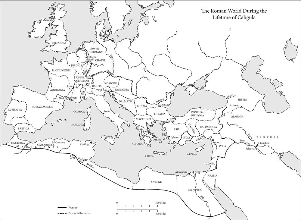 The social and political milieu in which Caligula lived and reigned was arguably the outcome of a lengthy process of historical evolution, but the more immediate events that made a phenomenon like him possible can reasonably be traced back to the aftermath of the assassination of Julius Caesar, in March 44 BC. This celebrated event initiated a period of political chaos, leading to the rise of Caesar’s grandnephew and heir, Octavian. In 27 BC, after the defeat of his arch-rival Mark Antony, he was granted the title of “Augustus” by the Roman senate. The senate also assigned him an enormous “province,” in the form of authority over those Roman possessions requiring a military presence, not unalterably fixed but consisting basically of Gaul, Syria, and most of Spain; the remaining public/senatorial provinces were generally administered by proconsuls selected from the senate. It is at this point that we conventionally date the beginning of the Roman “empire,” in the sense of a system of government (Rome had, of course, already long possessed a physical empire of overseas territory).