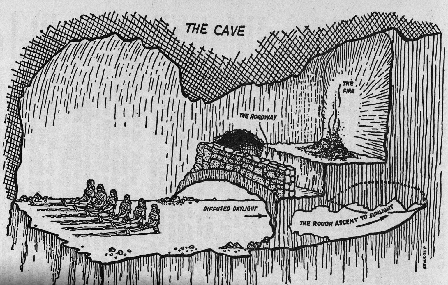 illustration of Plato’s Cave, De grot von Plato (sixteenth century). This work depicts the same scene as that depicted in the diagram using the artistic techniques of the high Renaissance.