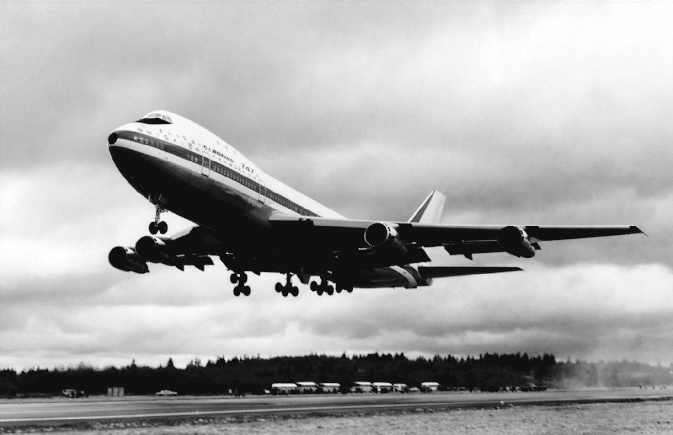 The widebodied Boeing 747, with its large seating capacity and long range, has made air travel the most efficient way for the public to travel.