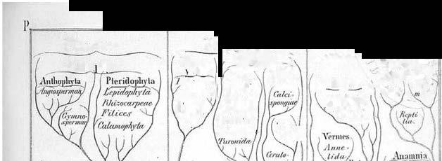 Oneof the earliest and best-known evolutionary trees of life published from aDarwinian (genealogical) perspective wasbyErnst Haeckel in 1866(Figure 1.1).Haeckelcoined theterm"phylogeny," andhisfamoustrees codifiedwhat becameatraditionof depicting phylogenetic hypothesesasbranching diagrams, a traditionthathas persistedsince that time. However, ahand-drawn sketcl1 inCharles Dar\,vin's field notebook(1837)clearlydepictshisviewofSouthAmerican mammal evolution in a branchingtree of extant and fossil species. Andin hisbook, On the Origin ofSpecies (1859),Darwin presented ru1abstract branching diagra1n of a theoretical treeof speciesas a way of illustrating his conceptof descent with modification.Jean Baptistelan1arck probablypresented the firsthistorical trees ofaniJnalsinhisPhilosophieZoologiquein1809, and theFrench botanist AugustinAugierpublished a tree showing the relationships among plants in 1801 (perhaps thefirst treeeverpublished)-although both lan1arck's and Augier's trees were produced before themodernconceptofevolutionhadbeen clearlyarticulated.Wediscussvariousways inwhicllphylogenetic treesare developed in Chapter2. SinceHaeckel's day,many names have beencoined forthe branches that sprout from these trees, and in recent years a glut of new names hasbeen introduced to labelvarious molecu.Jarlybased cladesnestedwithin the tree of life. We \•viiinot burden you with all of thesenames,but afewofthemneedtobe definedhere before we launchinto ourstudy ofthe invertebrates. Some of these names refer to groups of organisms that are thought to be natural phylogenetic lineages