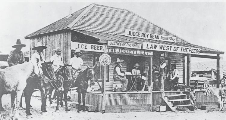 Perhaps the most colorful JP was Roy Bean, popularized in film as the sole peace officer in a 35,000-square-mile area west of the Pecos River, near Langtry, Texas. Bean was known to hold court in his shack, where signs hung on the front porch proclaimed, “Justice Roy Bean, Notary Public,” “Law West of the Pecos,” and “Beer Saloon.” Cold beer and the law undoubtedly shared many quarters on the Western frontier.
