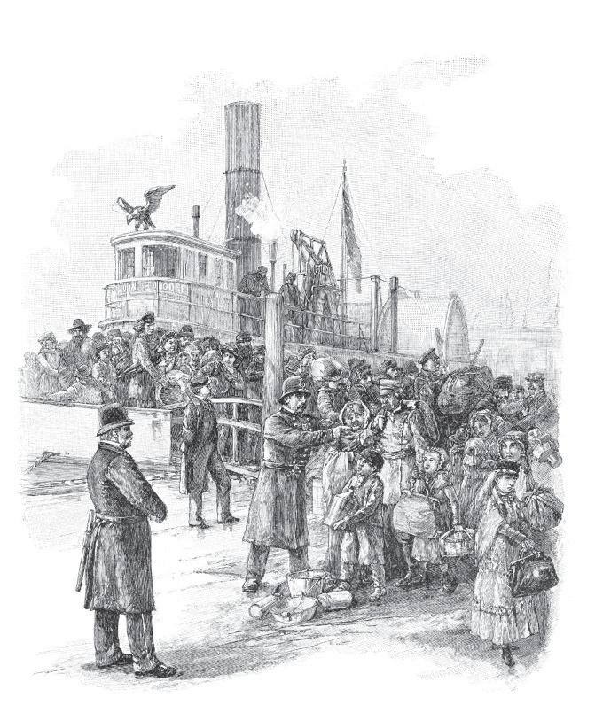 ▲ Landing immigrants at Castle Garden, New York City. Engraving from Harper’s Monthly Magazine, June 1884. (Courtesy Stocksnapper/Shutterstock.)