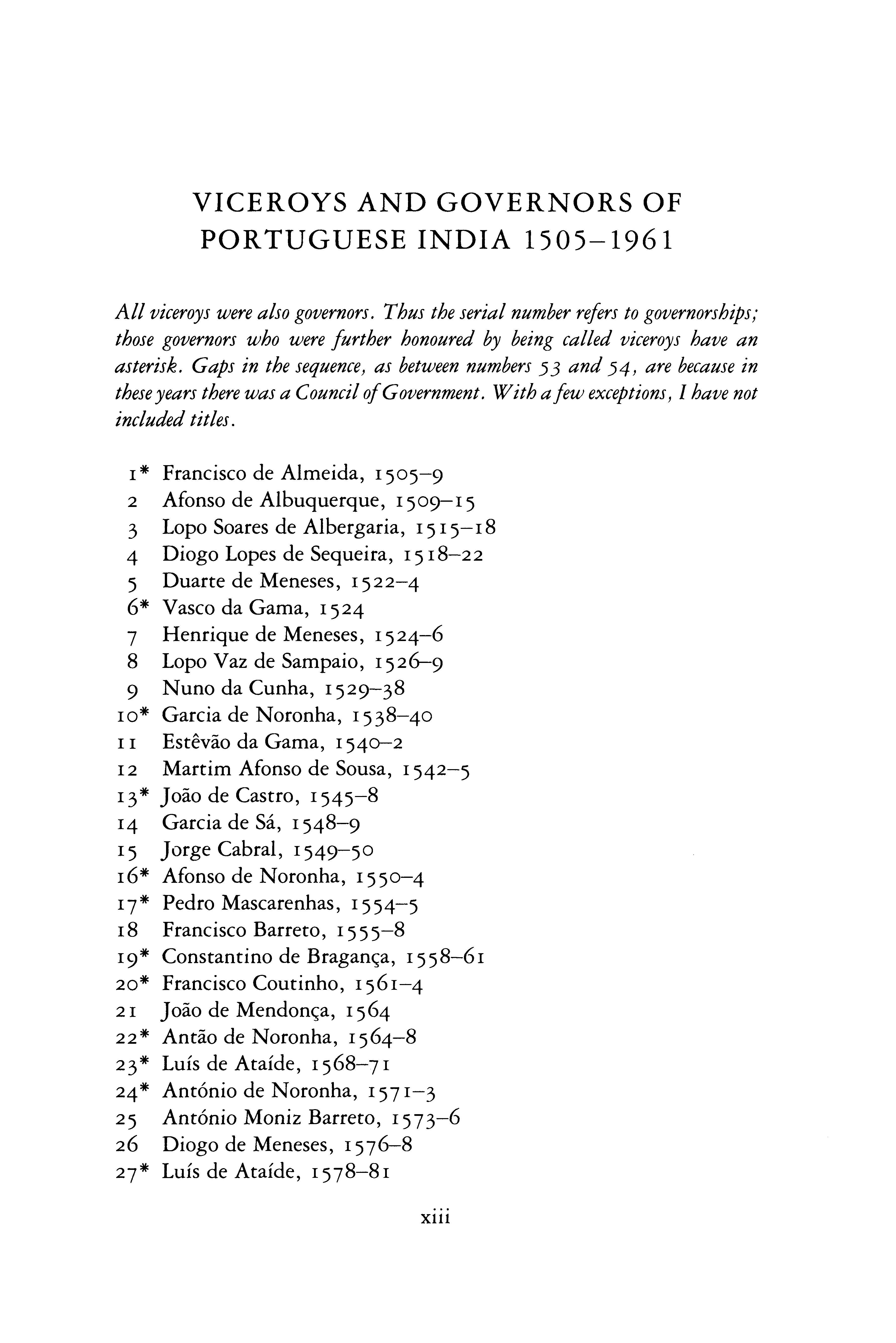 VICEROY S AN D GOVERNOR S OF PORTUGUES E INDI A 1505-196 1