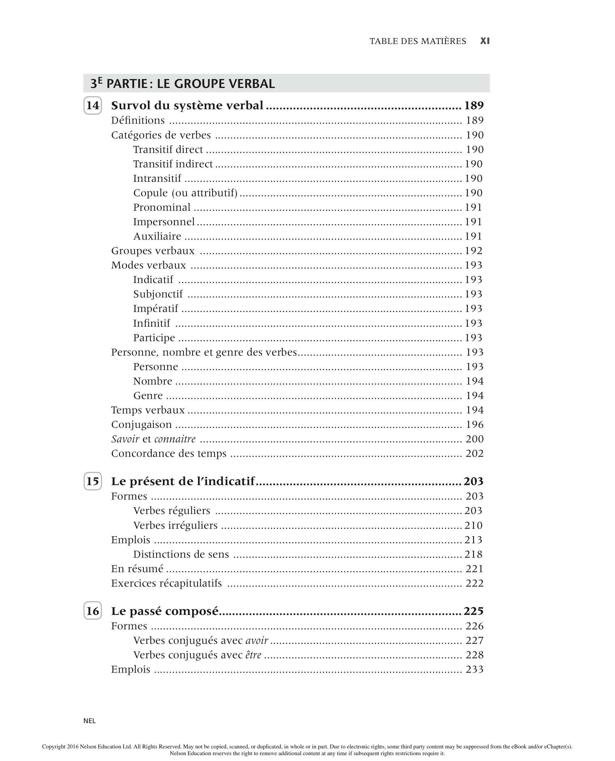 Verbe (ou V; voir chapitres 14 a 27)