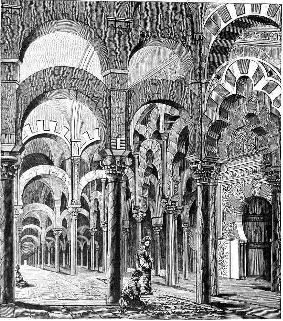 Fig. 333. Interior of the Ancient Mosque at Cordova, now a Catholic Cathedral; built in the Eighth Century by Abderhaman I., and altered for Catholic worship after the conversion of the Moors; it is one of the largest and most splendid monuments of Moorish architecture.