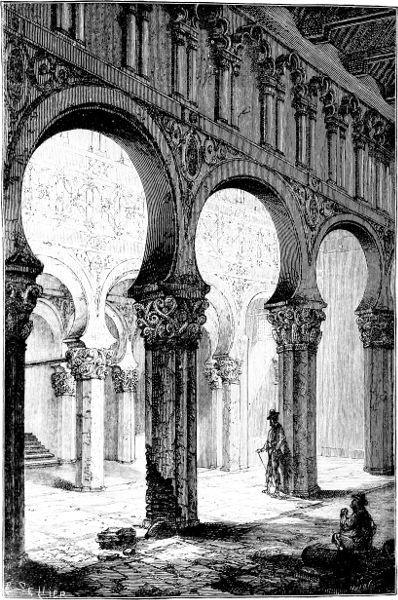 Fig. 332. Great Synagogue of Toledo (Third Century), restored at different periods, and consecrated for Catholic worship, under the name of Santa Maria Blanca, after the expulsion of the Jews in 1405: now used as a military storehouse.—After a Drawing by Don Manuel de Assas.