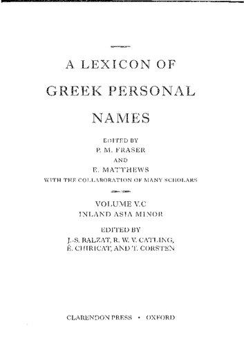 This, the last of the three projected fascicles of Volume V, treats the regions of inland Asia Minor and this introduction has as one of its objectives the provision of the essential socio-historical background against which the onomastics of its constituent regions should be set. In this geographical space, for the first time in LGPN's coverage of the personal names of the ancient Greek world, not a single Greek city-state of the Archaic or Classical periods is to be found. 1 During the Archaic period, large parts of the region lay under the control of powerful indigenous centralized states, to begin with the Phrygians whose dominant role was briefly taken over by the Lydians before the Persians came to rule all of Asia Minor in the second half of the sixth century, a situation that remained essentially unchanged until the conquests of Alexander the Great. This was a multi-ethnic and multi-lingual landscape in which there was no one dominant culture. Some of its inhabitants were direct descendants of their second-millennium Luwian predecessors, while others such as the Phrygians, the Celts, and Italians were later newcomers from continental Europe. The non-Greek component (indigenous, Iranian, Celtic, Italian) among the names in this fascicle is correspondingly substantial, something which also characterized those regions treated in LGPN V.B where native culture remained resilient and/or hellenization made little impression until comparatively late. In the period before the Macedonian conquest, inland Asia Minor was a world in which large central places with urban functions were few and far between. Contacts with Greeks were very limited, mainly confined to exchanges in luxury goods and the trade in slaves, though the simultaneous adoption by Greeks and Phrygians of an alphabet sharing many of the same characters, based on the Phoenician script, does imply rather closer and more intimate relations. So, when Xenophon with the 10,000 accompanied Kyros the Younger on his journey to Mesopotamia in 401 BC, they were probably the first large body of Greeks, many of them from the Peloponnese and Central Greece, to set foot in the central and southern parts of inland Asia Minor before the Macedonians traced some of the same routes in 334-333 BC. No Greek inscription is known from any part of this vast land mass before the conquest. 2 Soon after those world-changing events, pioneering Greco-Macedonian settlements appeared in parts of Phrygia. Subsequently the Seleucid and Attalid kingdoms kept a great part of inland Asia Minor integrated into the wider Greek world, reinforcing the Greek presence in southern Phrygia and northern Pisidia through the foundation of cities (Laodikeia, Hierapolis, Apameia, Eumeneia, Apollonia, Antiocheia), some of which rose to great prominence and prosperity. Elsewhere the impact of cultural and political hellenization was felt to varying degrees in the third and second centuries BC. Situated on the fringe of the Greek world, Pisidian communities, though receptive to hellenizing influences, remained determinedly independent of external control until the first century BC. Celtic tribes migrating from the
