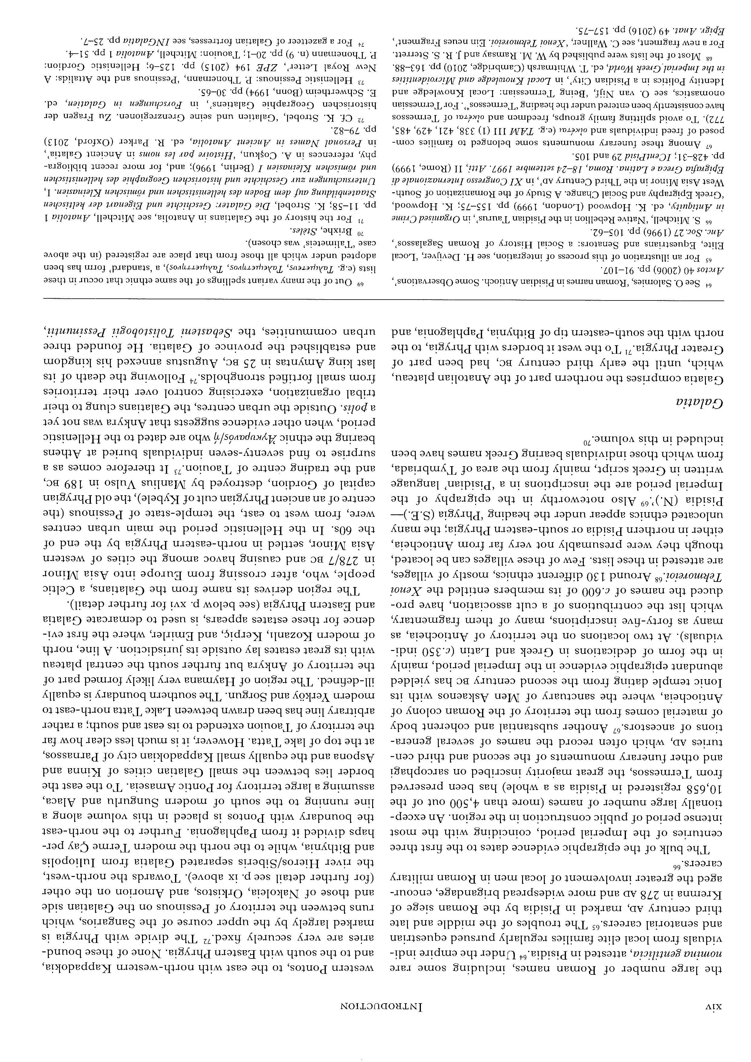 7 A magnificent and wide-ranging synthetic study of inland Asia lVIinor, concerned primarily with the period of the Roman Empire until late antiquity, is to be found in the two volumes of S. lVIitchell's Anatolia. Land, JI/Jen,and Gods i11Asia Jl!Iinor (I, The Celts, and the Impact of Roman Rule; II, The Rise of the Church. Oxford, 1993).