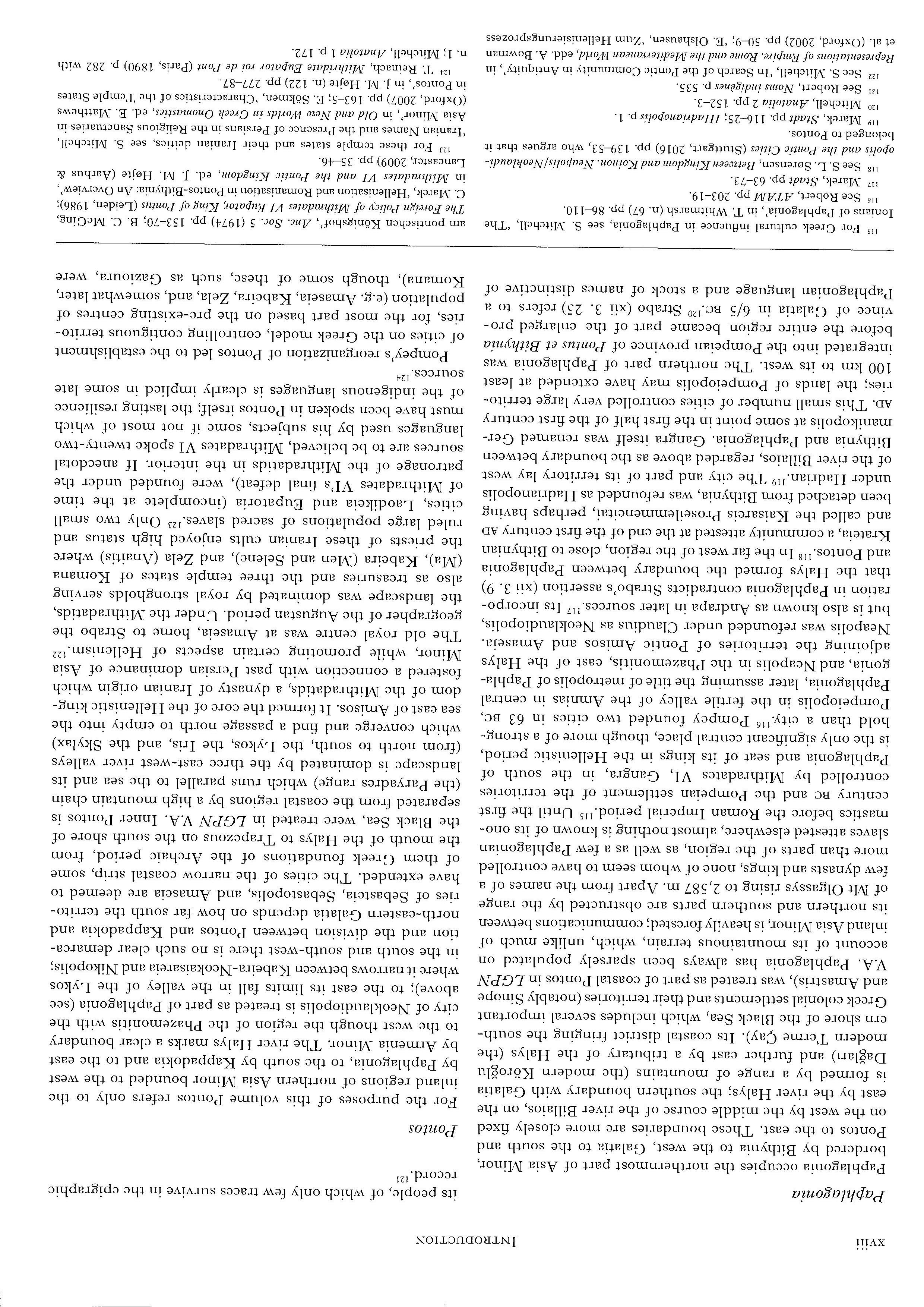 Timothy Mitford provided the sections on KabeiraNeokaisareia, Komana-Hierokaisareia, and Sebasteia extracted from his draft of Studia Pontica III (2), covering the eastern part of Pontos as far as the Euphrates. When published it will complete the epigraphic coverage of Pontos and Armenia Minor begun in 1910 by J. G. C. Anderson, F Cumont, and H. Gregoire. Mitford also made available the epigraphic :hapter of his East of Asia Minor: Rome's Hidden Frontier :Oxford, 2017), in which the inscriptions from Nikopolis and