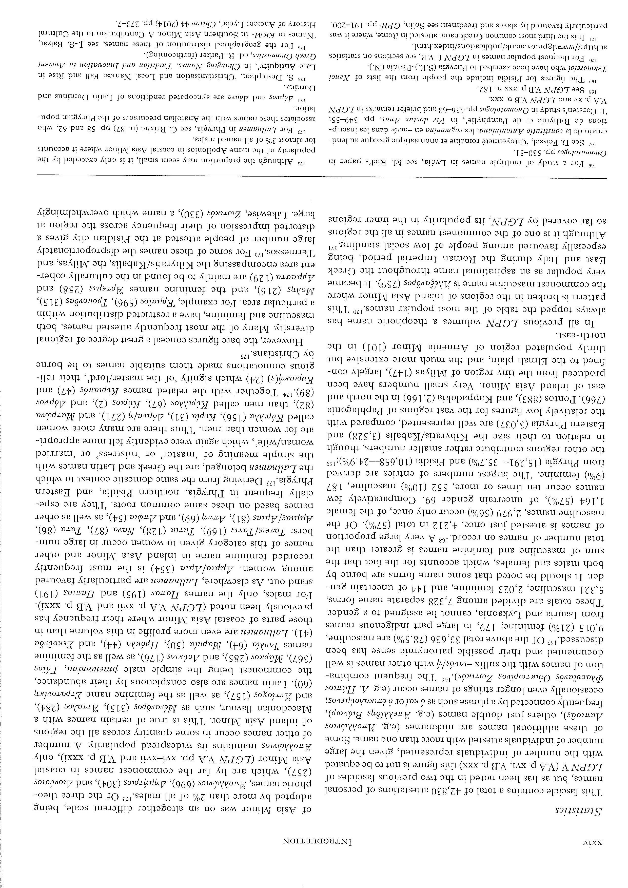 167 See D. Feissel, 'Citoyennete romaine et onomastique grecque au lendemain de la constitutio Antoniniana: les cognomina en -iavOS" clans Jes inscriptions de Bithynie et de Pamphylie', in Vir doctus Anat. pp. 349-55; T. Corsten's study in Onomatologos pp. 456-63 and briefer remarks in LGPN V.A p. x,· and LGPN V.B p. xxx.