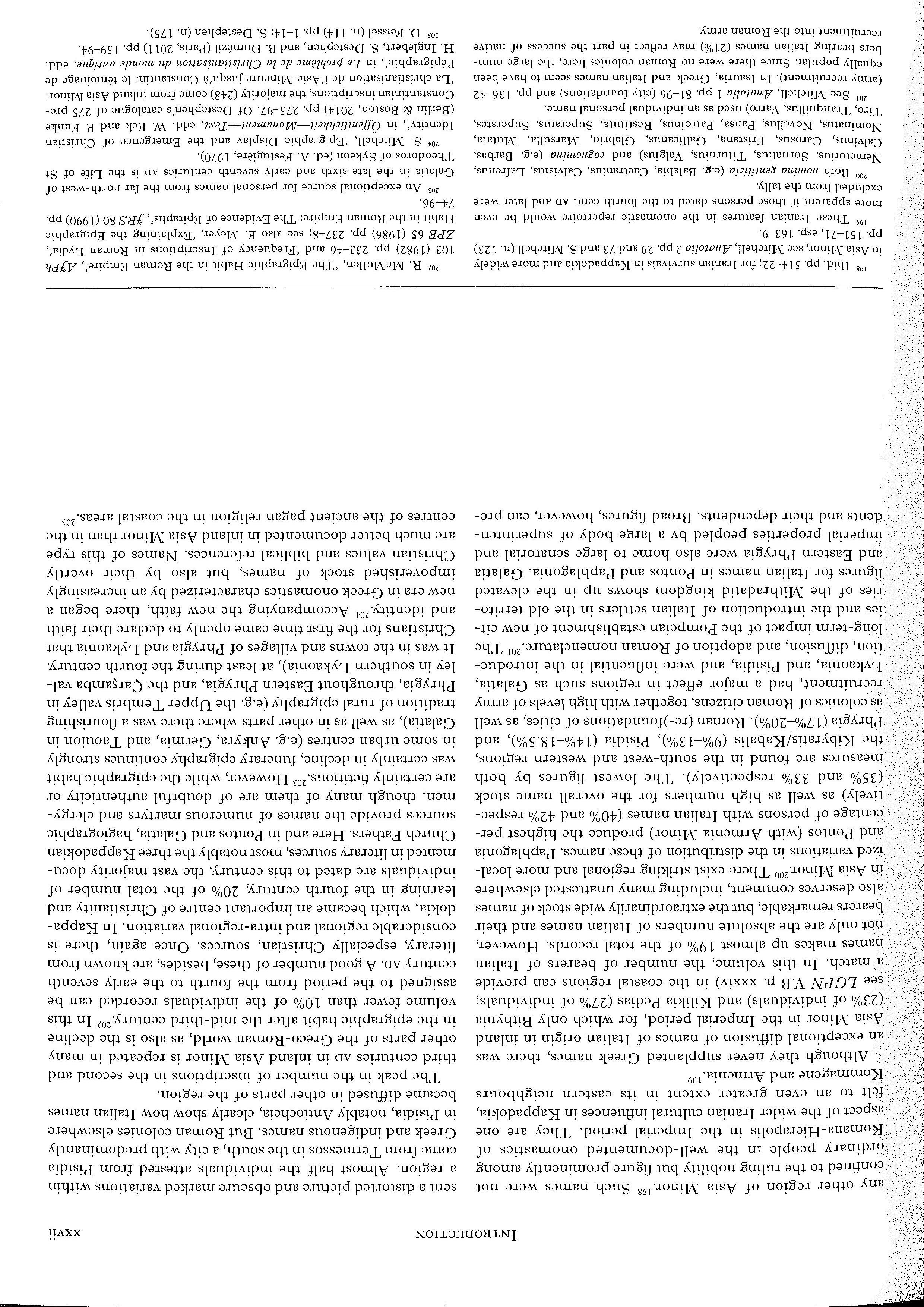 a stock of Anatolian names with ethnic designations used by historians of the Classical world. In this context it is worth stressing that the percentages given for the category 'indigenous names' in each region in Table 1 (p. xxviii) relate to a broad category of names rather than to names specific to each region (e.g. the figure of 43% for indigenous names in Isauria does not relate only to !saurian names).