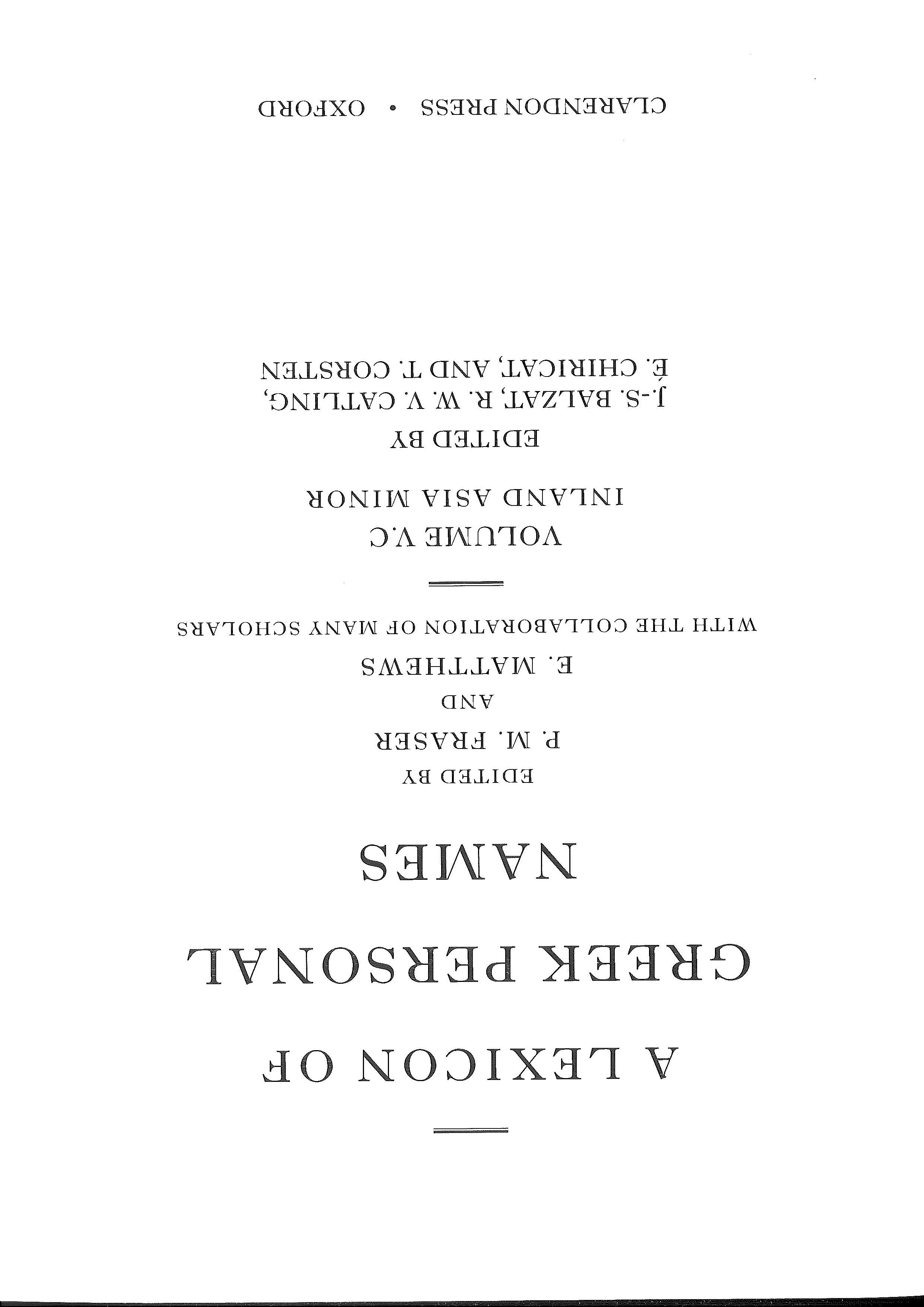For the reasons summarized above, the original plan, enunciated in the Introduction to Volume I (pp. vii-viii), consigned inland Asia Minor to a second phase of the LGPN project which would concern itself with those parts of the ancient world which were largely untouched by Greeks and the Greek language until the conquests of Alexander: Syria, Palestine, Arabia, Egypt, and the trans-Euphratic regions, as well as what Fraser termed 'continental Asia Minor'. This policy was changed only when more detailed plans were being made for Volume Von Asia Minor between 2000-2. In the Introduction to LGPN V.A (p. x) it is stated that it was to be the first of three fascicles on Asia Minor, the third of which would treat the interior. However, the consequence of the earlier plan meant that no systematic work had been done on the basic compilation of the personal names for inland Asia Minor in the initial stages of the project, other than those found scattered among documents and texts relating to those regions covered by LGPN I-V.B. So when work on this fascicle began in earnest in late summer 2013, it involved working ab initio on a large body of epigraphic material for which there is relatively little coverage in the standard corpora of inscriptions, much of it being found in journal publications of the later nineteenth and early twentieth centuries. Therefore, within the constraints of time imposed by the funding for its completion, the main thrust of our work has had to be directed at the basic compilation of the personal names.