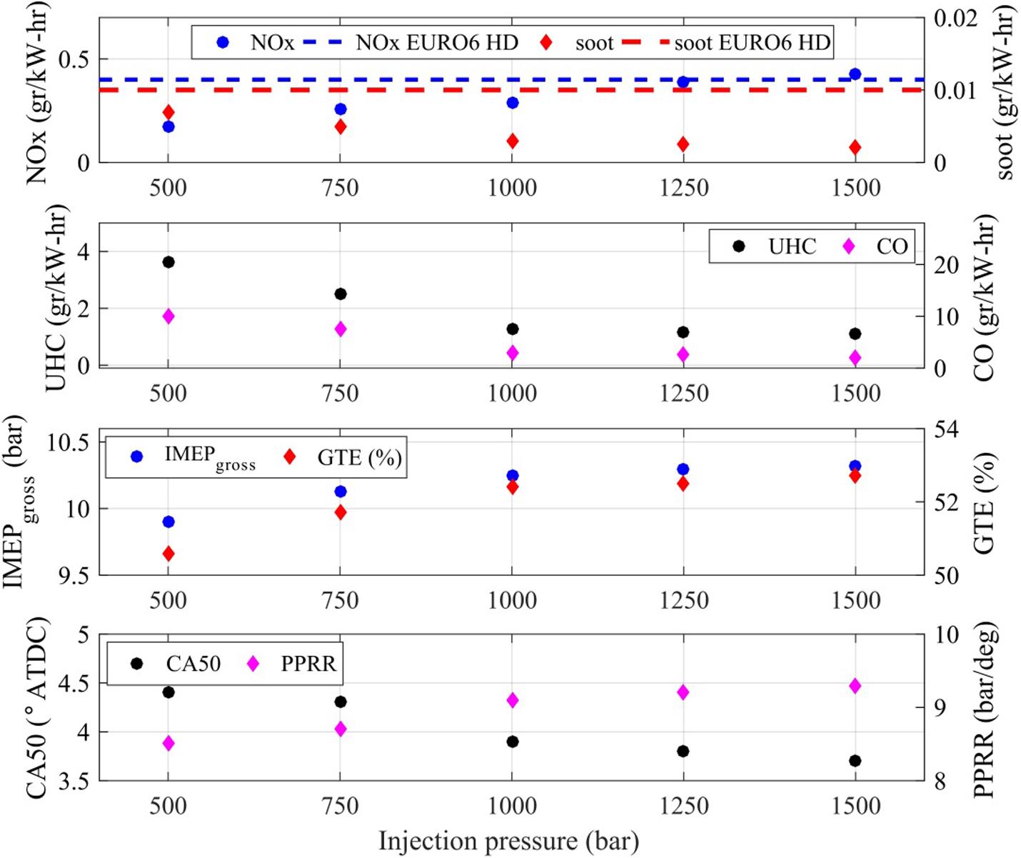 Shimetal. [26] performedanexperimentalstudyonthecomparisonbetweenadvancedcombustiontechnologiessuchasHCCI,PCCI, RCCI,andCDC.ItwasreportedthatallstrategiescoulddecreaseNOX andPMsimultaneouslywiththeuseofaftertreatment.HCCIandPCCI hadsomechallengestomaintainthecombustionphasing,sotheEGR ratewasincreasedupto40%toservethepurpose.UHCandCO emissionsincreasedbyabout38timesinadvancedstrategiescompared toCDC.Inthedual-fuelPCCI,indicatedthermalefficiencywaspeaked at45.3%,andbyusingnaturalgas,CO2 emissionreducedby14.3%.