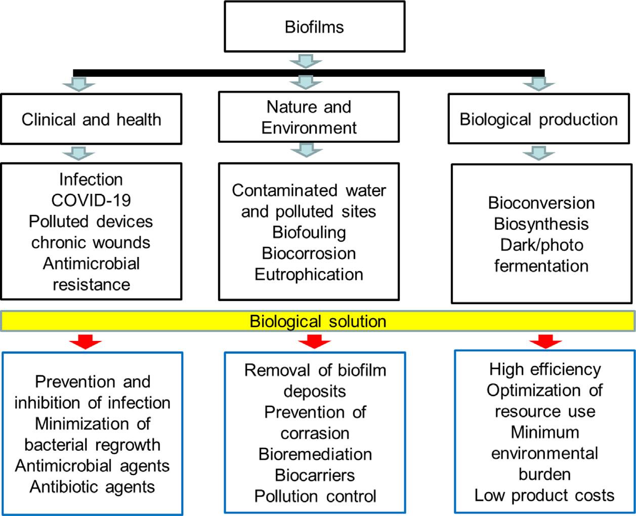Problemsandobjectivesofthreemainareasofbiofilms.