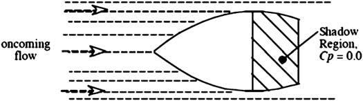 where q istheanglebetweensurfaceand fl owdirection.Hence,thegeometryofthe bodydeterminesthelocalsurfacepressure.Besides,inthisconcept,theportionofthe bodythatencountersthe fl owisconsideredforparticleseffectsasdepictedin Fig.1.8. Theotherportionofthebodyisrecognizedasshadowwhere Cp ¼ 0.