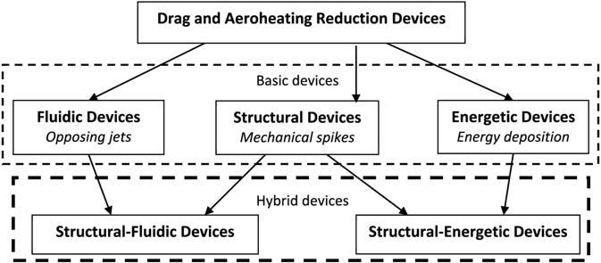 Figure1.13 Physics-basedarrangementofaeroheatinganddragreductiontechniques. FromAhmed,M.Y.M., & Qin,N.(2020).Forebodyshockcontroldevicesfordragandaeroheatingreduction:Acomprehensivesurveywithapracticalperspective. ProgressinAerospace Sciences,112,100585. https://doi.org/10.1016/j.paerosci.2019.100585