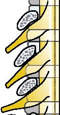 Note: The cervical spinal roots emerge above the corresponding vertebrae in close proximity to the disc, so that the C6 root is affected by a lateral disc protrusion at C5/6.