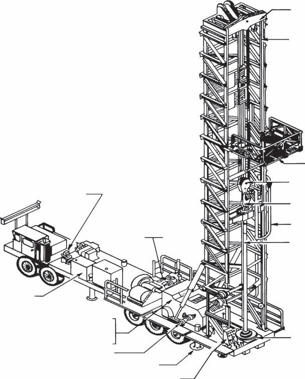 Theschematiclayoutin Figure2-4 showsatypicalself-propelleddoubledrillingrig.Thisexamplerigisfittedwithamudpumpforcirculatingdrillingmud.