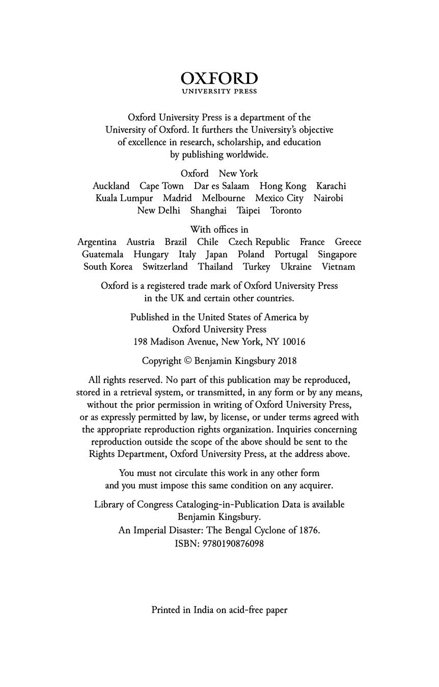 An Imperial Disaster: The Bengal Cyclone of 1876 Benjamin Kingsbury