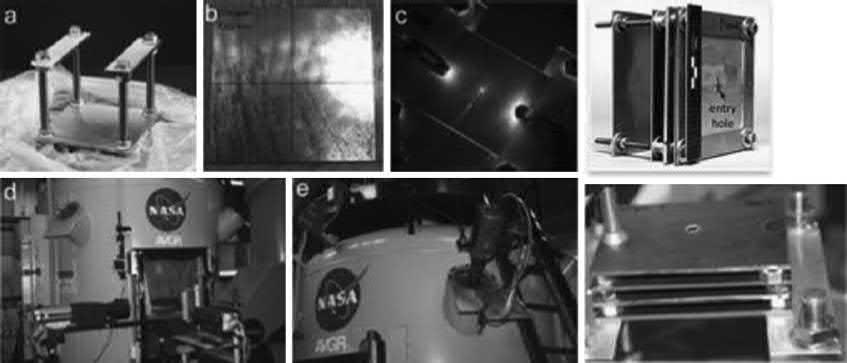 Theso-called“Whippleprotectivestructure”developedbyFredWhipple(anAmericanastronomer)wasadoptedandisbeingassembledinspacecraftbymanyaerospaceagencies,inwhich thematerialoftheoutershieldisofparamountimportancetoprotectthemaincraftduringmicrometeoroidsandorbitaldebris(MMOD)impacts.Incontrasttomonolithicshieldingoftheearlyspacecraft, Whippleshieldsconsistofarelativelythinouterbumperspacedsomedistancefromthemainspacecraftwall.Thebumperisnotexpectedtostoptheincomingparticleorevenremovemuchofitsenergy, butrathertobreakitupanddisperseit,dividingtheoriginalparticleenergyamongmanyfragments thatfanoutbetweenthebumperandtheouterspacecraftwall.