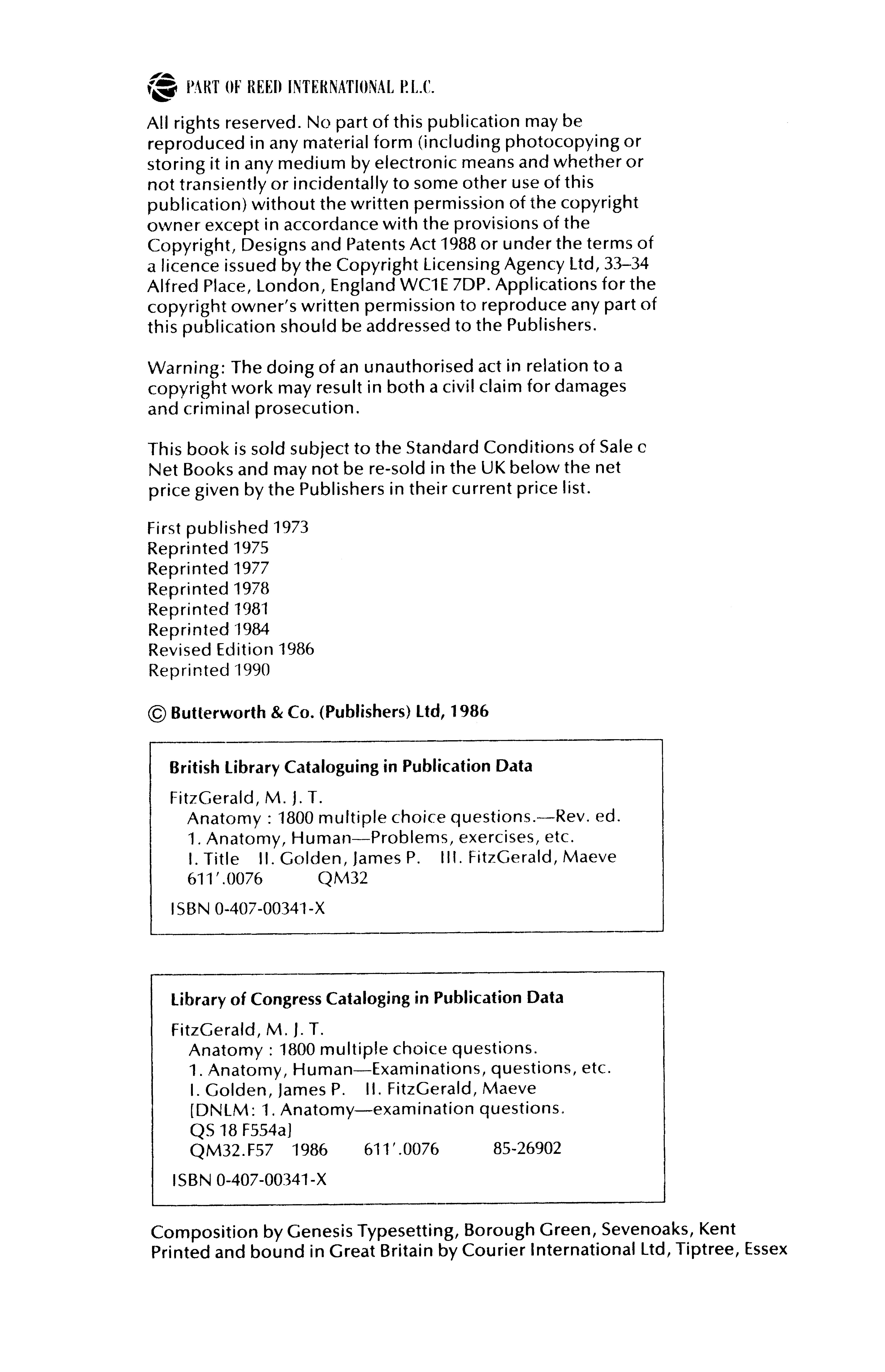 All rights reserved No part of this publication may be reproduced in any material form (including photocopying or storing it in any medium by electronic means and whether or not transiently or incidentally to some other use of this publication) without the written permission of the copyright owner except in accordance with the provisions of the Copyright, Designs and Patents Act 1988 or under the terms of a licence issued by the Copyright Licensing Agency Ltd, 33-34 Alfred Place, London, England WC1E 7DP Applications for the copyright owner's written permission to reproduce any part of this publication should be addressed to the Publishers