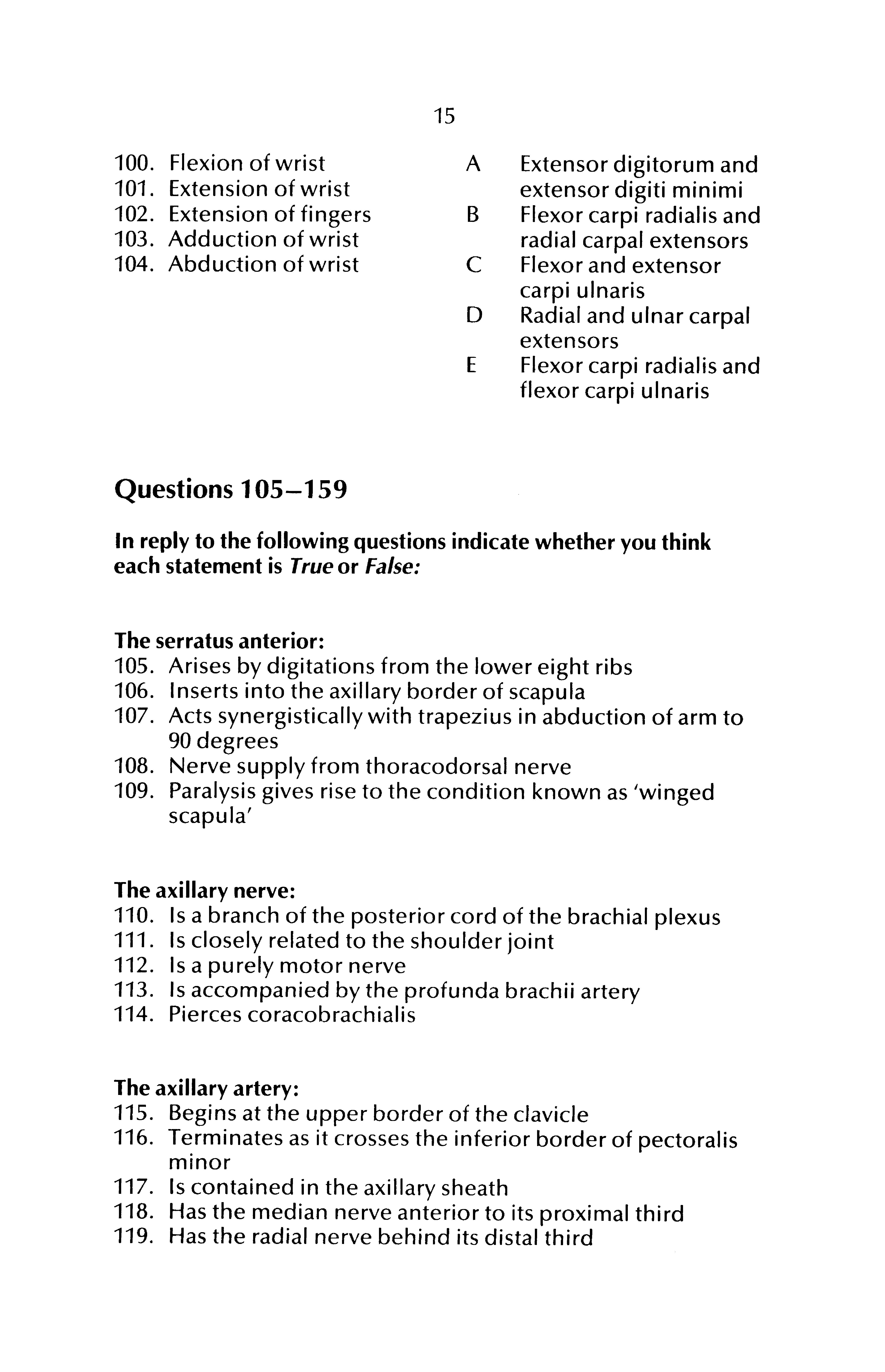 100 Flexion of wrist A Extensor digitorum and extensor digiti minimi