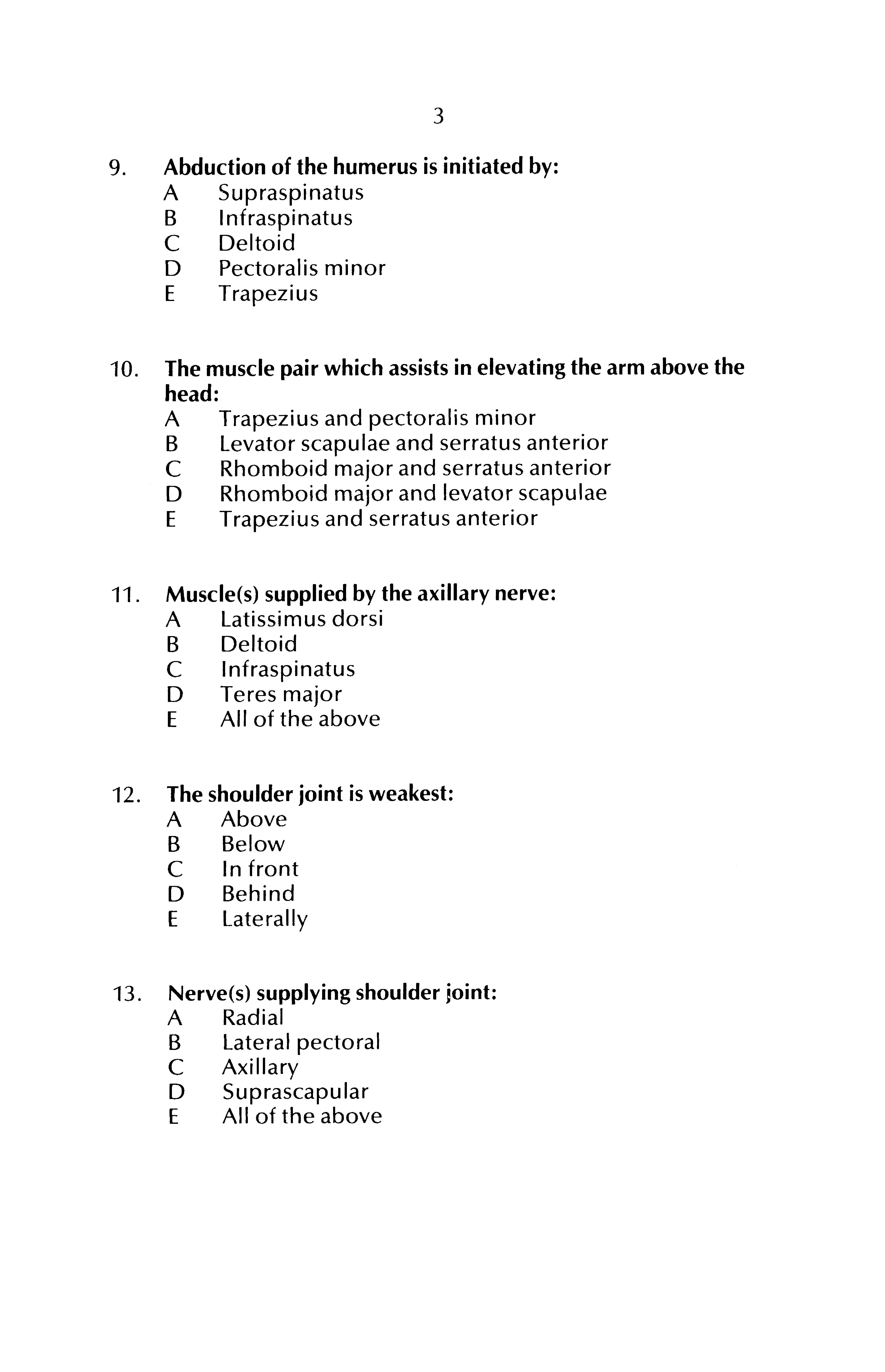 9 Abduction of the humerus is initiated by: