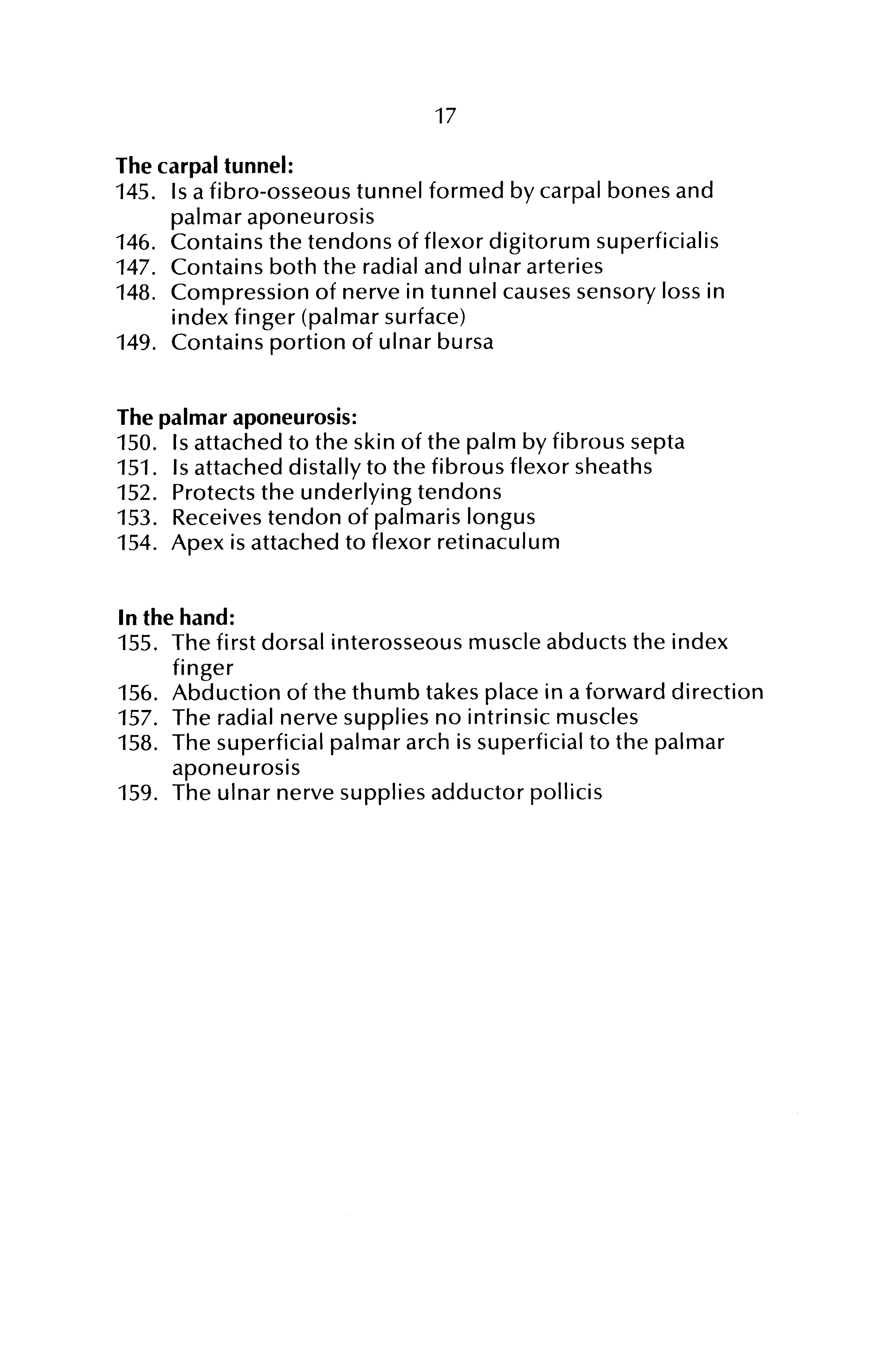 148. Compression of nerve in tunnel causes sensory loss in index finger (palmar surface)