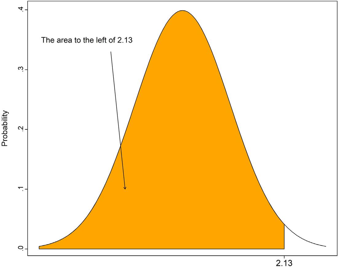 Example2.1:ComputetheareatotheleftofaZvalue: Computetheareaunder thestandardnormalcurvetotheleftofapositiveZvalueof2.13.