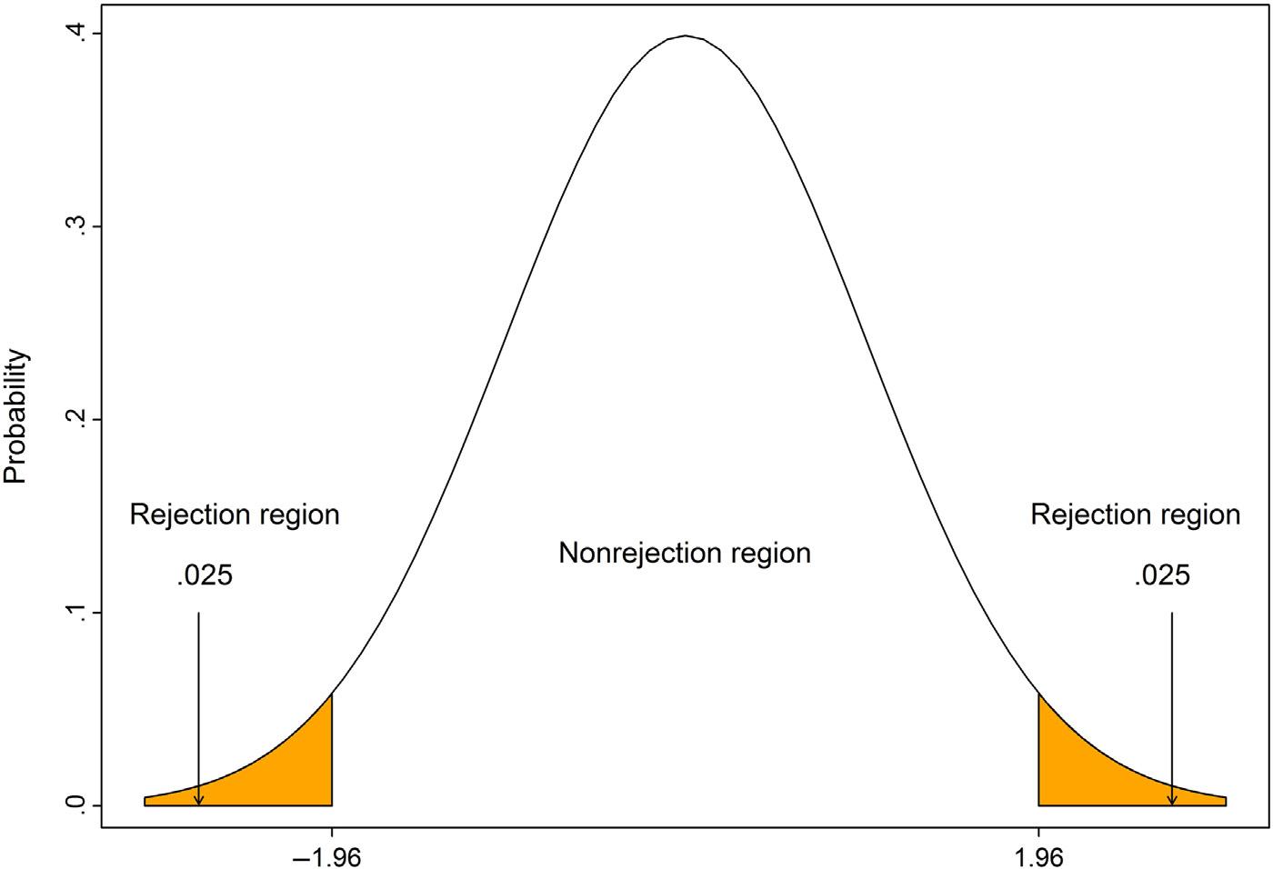 andcriticalvalue).Iftheabsoluteteststatisticvalueisgreaterthanthecriticalvalue,the nullhypothesisisrejected;otherwisethenullhypothesisisnotrejected.Orusingtheprobabilitydistributioncurve,iftheteststatisticvaluefallsinthecriticalregion,thenull hypothesisisrejected;otherwisethenullhypothesisisnotrejected.