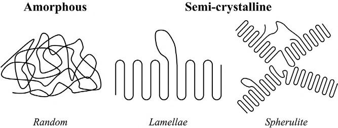 arrangementofthestrands,youwillnoticethelackofanyspatialorder.Examplesofamorphouspolymersarepolystyrene,polymethylmethacrylate (PMMA),polycarbonate,polyvinylchloride,andnaturalrubber.
