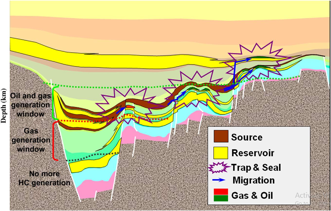 Step4:Determinethestructural, depositional,andpostdepositionalhistory (e.g., MukherjeeandKumar,2018),atbasin level.Determiningthetimingofmajor structuraleventsisextremelyimportantfor determiningthetimingofhydrocarbon generation,andthen,theexpulsionand migrationthroughfaults,fracturenetworks, andporousconnectedsediments.Itisalsoa goodtimetoidentifypossiblestructural traps,bydefiningreservoirrock,seals,and migrationpathwaysintothepossibletrap.