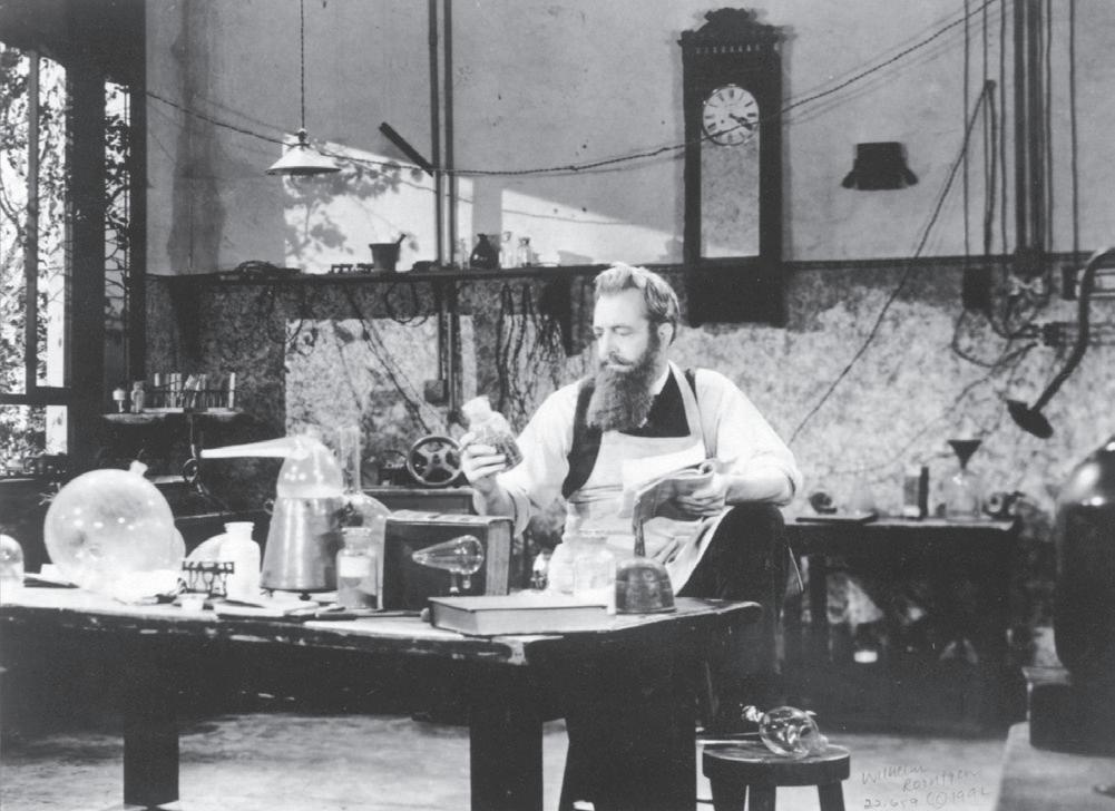 Fig. 1.1 Wilhelm Roentgen découvre les rayons X. Wilhelm Roentgen dans son laboratoire en Allemagne. Photographie de 1895, année où, le 8 novembre, il a découvert une nouvelle source invisible de radiation électromagnétique qu'il a appelée rayons X. Pour cette découverte, il reçut le premier prix Nobel de physique en 1901.