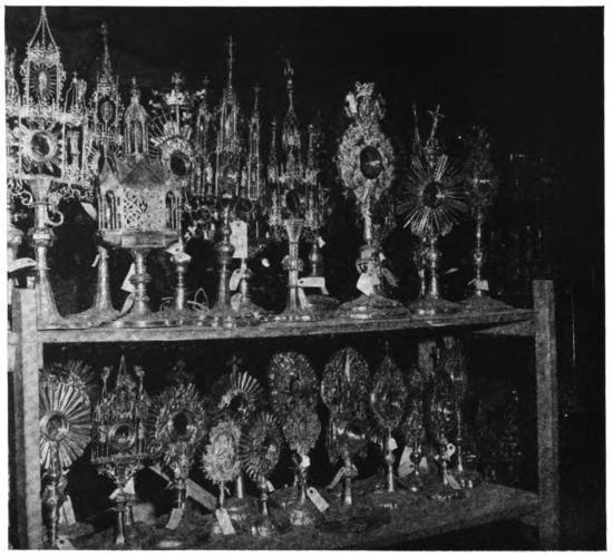 View of the Treasure Room at the Central Collecting Point, Wiesbaden, showing treasures stolen from Polish churches.