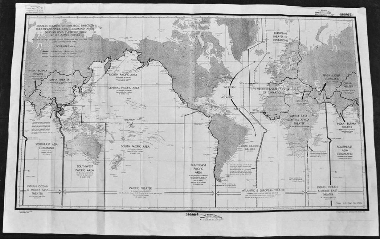 Figure 1.1 Map of Existing Theaters of Strategic Direction-Theaters of Operation, 1944 Courtesy of National Archives and Records Administration II.
