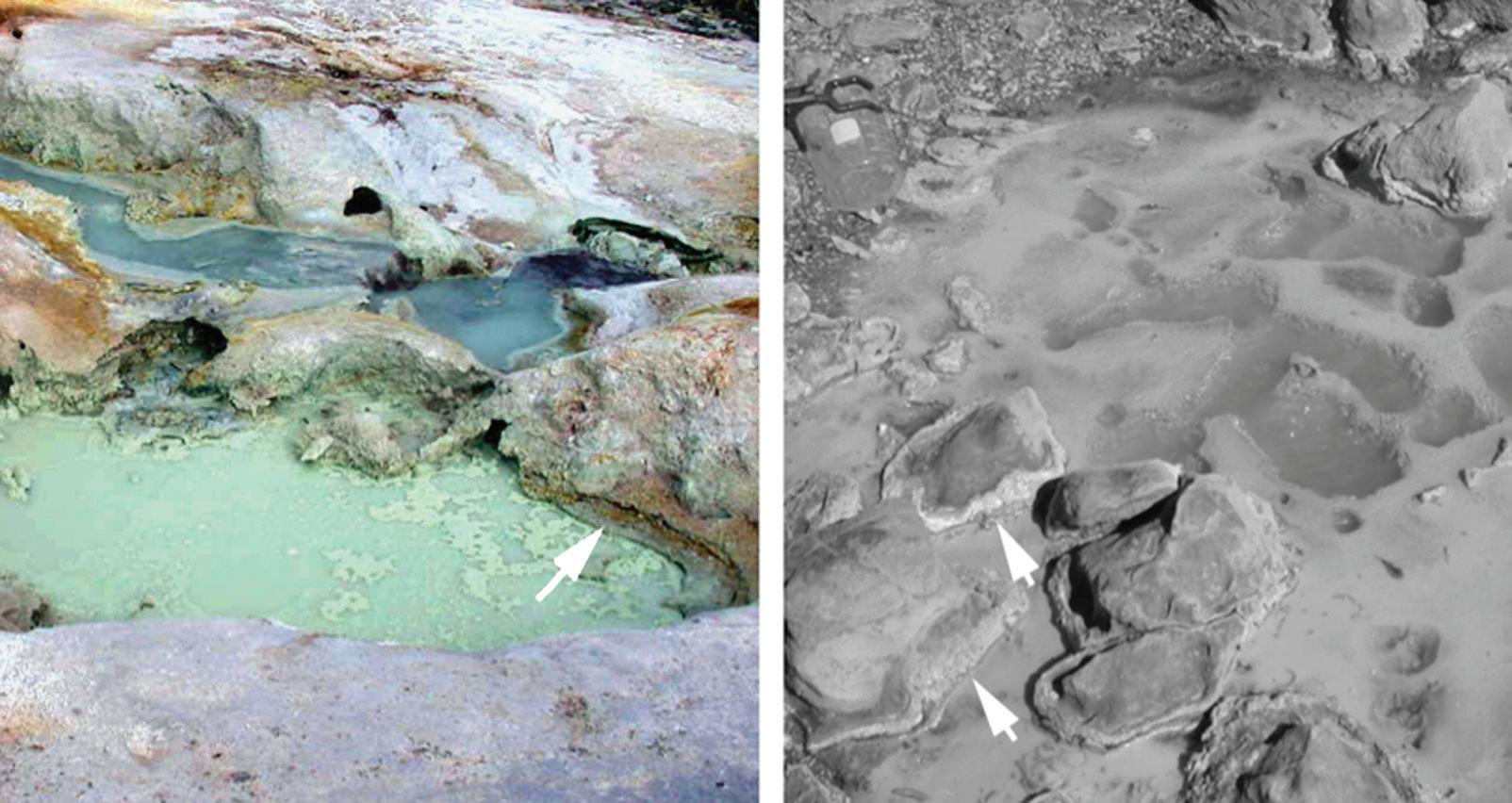 • The water accumulates in hydrothermal fields that undergo cycles of evaporation and refilling.