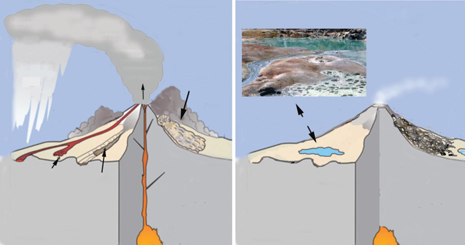 Plate 3.2. Following volcanic eruptions lasting days to weeks, water accumulates in hydrothermal fields that remain for thousands of years.