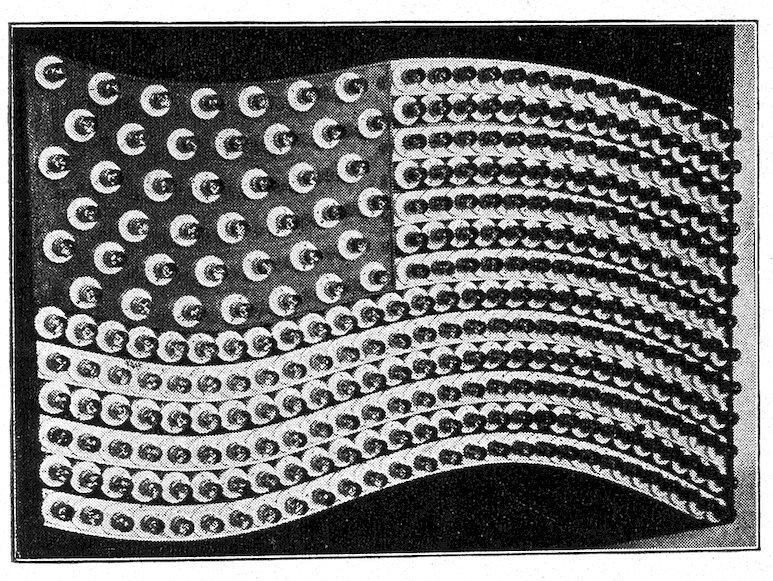 This description is for flag 4½ × 6 feet, to contain about 450 lamps. There are a number of different ways of producing this effect, but I have tried this one as described, and found it very satisfactory, likewise inexpensive to construct.