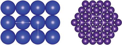 Symmetryispleasingtotheeye,butwhichofthepossibilitiesarethemost physicallyimportant?Therealanswerwillhavetowait,butwecanstartwitha guessthattheenergyisataminimumwhentheatomsarepackedintothesmallest possiblevolume.Toestimatethepackingdensityofeachcrystalstructure,we assumethatalltheatomsarecircular.