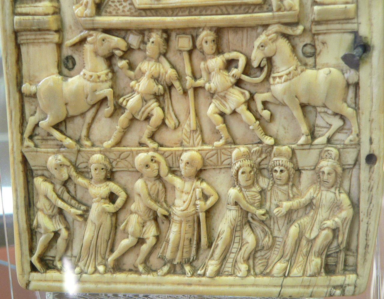 FIGURE 1 Dancers and actresses on the diptych of Flavios Anastasios Probos. Wikimedia Commons.