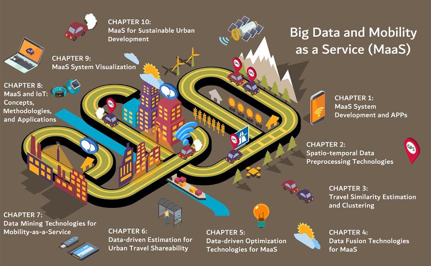 Thebookorganizescornerstonetechnologiesinthesphereofbigdataand MaaS,focusingonintroducinghowtoscreenandprocessthepotentialvalue fromthe“deluge”ofunverified,noisy,andsometimesincompleteinformation forMaaSdevelopment.Furthermore,chaptersarewrittenintheformofsummariesoffrontiertechnologiesapplicableinMaaS,includingMaaSsystem developmentandAPPs,spatiotemporaldatapreprocessingtechnologies,travel similarityestimationandclustering,datafusiontechnologiesforMaaS,datadrivenoptimizationtechnologiesforMaaS,data-drivenestimationforurban travelshareability,MaaSsystemdataminingtechnologies,IoTtechnologies forMaaS,MaaSsystemvisualization,andMaaSforurbansustainabledevelopment(Fig.1).