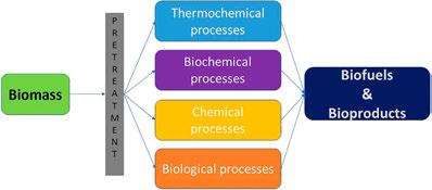 Biomassisconvertedintobiofuelsorbioproductsthroughavarietyoftreatments, eithermechanical,chemical/thermochemical,orbiological(Fig.1.6).