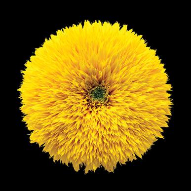 Plate 7: Normal sunflower (Helianthus) with ray flowers surrounding a head of dense disc flowers (left), and a mutant form with almost entirely ray flowers (right).
